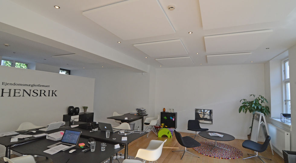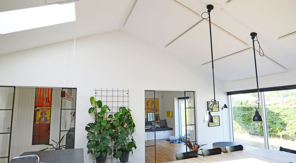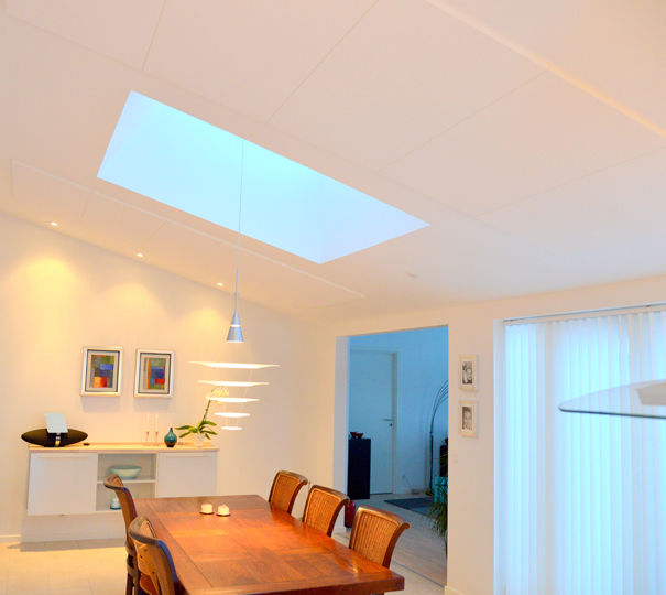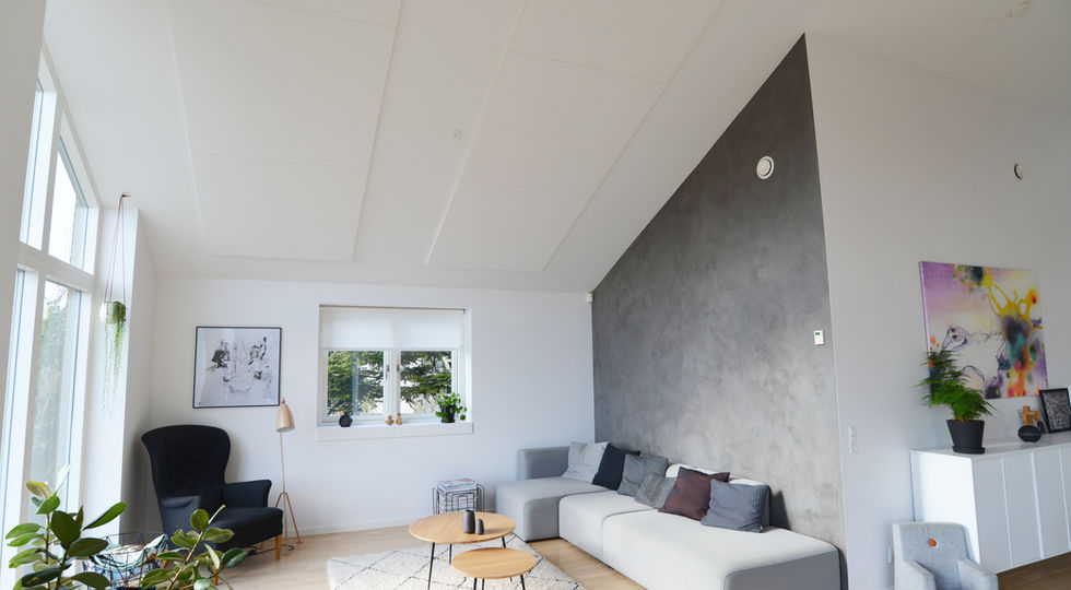 For at få den rigtige lyd i køkken/alrummet, kan man arbejde med diskrete absorberende plader i loftet – enten